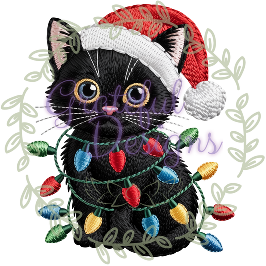 ๐ป๐ โChristmas Kitty Lightsโ Faux-Embroidery Tee โจ๐พ
