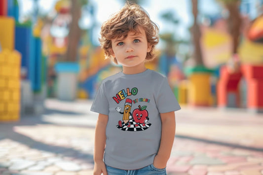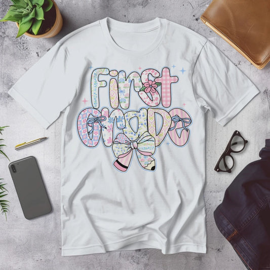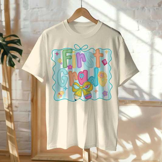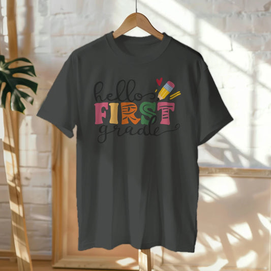 ๐จ๐ Hello First Grade! โ Whimsical & Bright Tee for Big School Energy ๐ซ๐