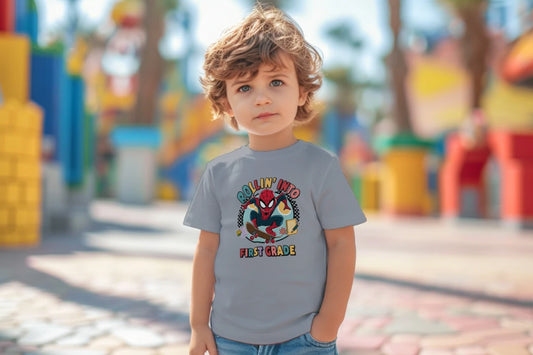 ๐ท๏ธ๐น Rollin' Into First Grade โ Spider Hero Skate Tee ๐ฎโจ