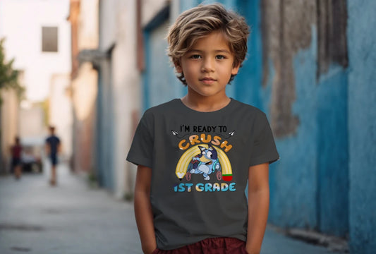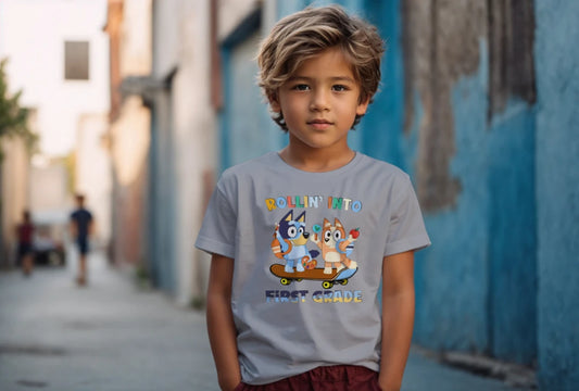 ๐น๐ Rollinโ Into First Grade โ Bluey & Bingo Back-to-School Tee ๐ถ๐