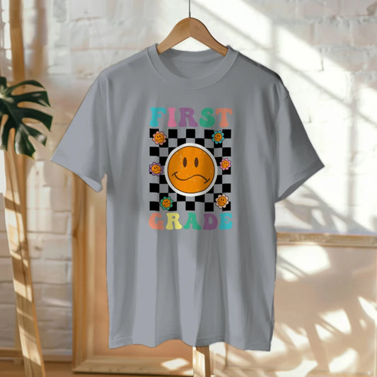๐กโ๏ธ First Grade Vibes โ Checkered Smiley Tee ๐๐